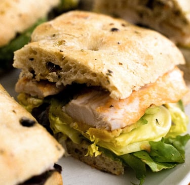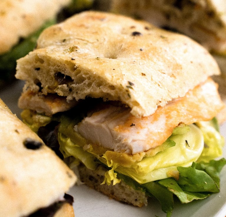 PAMPERO: pollo, queso provolone, cebolla caramelizada y mahones con pesto.